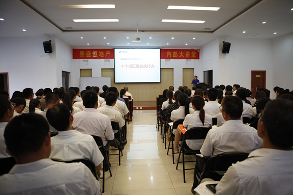 7月8日晚19時(shí),在這炎炎夏日的傍晚,公司六樓會(huì)議室座無(wú)虛席,來(lái)自地產(chǎn)公司、奧晟物業(yè)、啟翔房產(chǎn)和中匯地產(chǎn)的領(lǐng)導(dǎo)與員工早早的來(lái)到會(huì)場(chǎng)。營(yíng)銷總監(jiān)光文廣為大家?guī)?lái)的執(zhí)行力系列培訓(xùn)之《十個(gè)詞匯里的執(zhí)行力》。