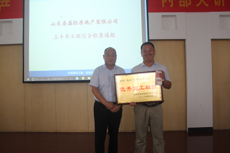 最后,公司總經理黃總作重要講話:肯定了優秀施工單位的成績,同時勉勵落后的施工單位不要氣餒,再接再厲。泰盛恒地產有信心、有底氣會同各合作單位走得更遠,發展得更好。